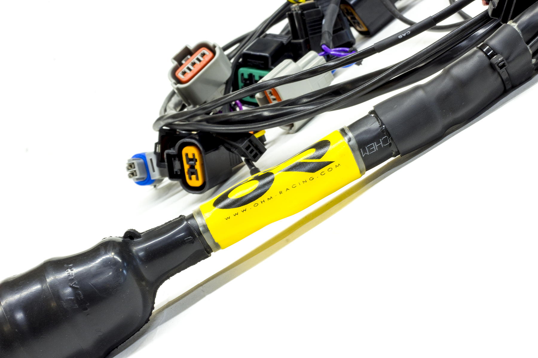 OHM Racing Plug & Play Wiring Harness offers Mil-Spec Tefzel wire ranging from 16AWG to 12AWG and brand new pins seals and connectors. The Tefzel coated wire is loomed with your choice of loom (check above). Each brand new connector is crimped with pneumatic heads to ensure an OEM crimp All heavy interference circuits are protected and grounded properly and no soldering is used at all on this harness (soldering can crack on vibration) only KET open barrel splicing everywhere its needed covered with adhesive heat-shrink as well. All ECU wires labeled and harness is 100% quality tested pin to pin, and Hi-pot tested before shipment. Estimated time 8-9 weeks for this custom order
