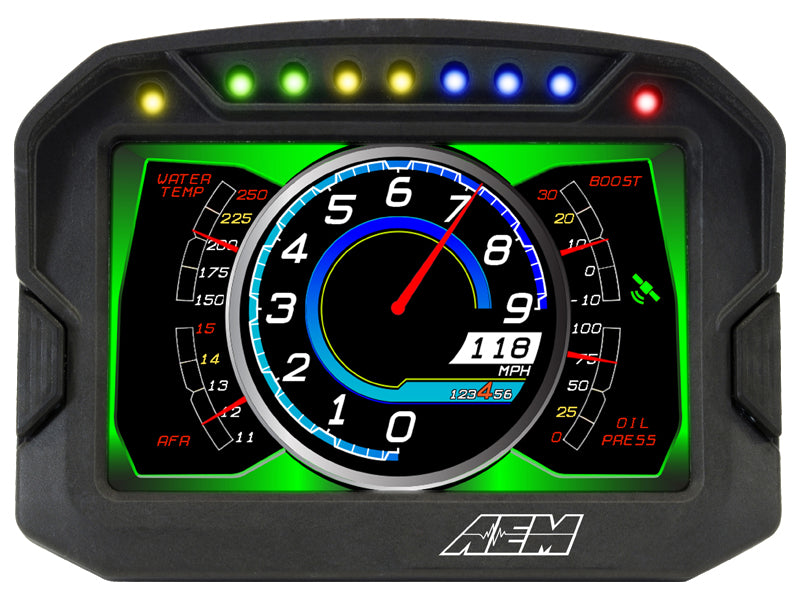 The CD-5 Carbon receives channels from two independent CAN bus inputs and it does not require special modules to read AEM and/or 3rd-party CAN signals. We have validated it to communicate with over 250 non-AEM devices, 2008-up stock ECUs via the OBDII port (see Supported Apps Tab), and the CD-5 Carbon can be added to any vehicle with the addition of our 22 Channel CAN Sensor Module. The CD-5 Carbon is ECU CAN ready and does not require external modules for CAN to CAN communication, just load your configuration and go! All channels can be named in virtually any language so that the information displayed makes sense to the user when displayed, whether on the main screens or warning alerts.