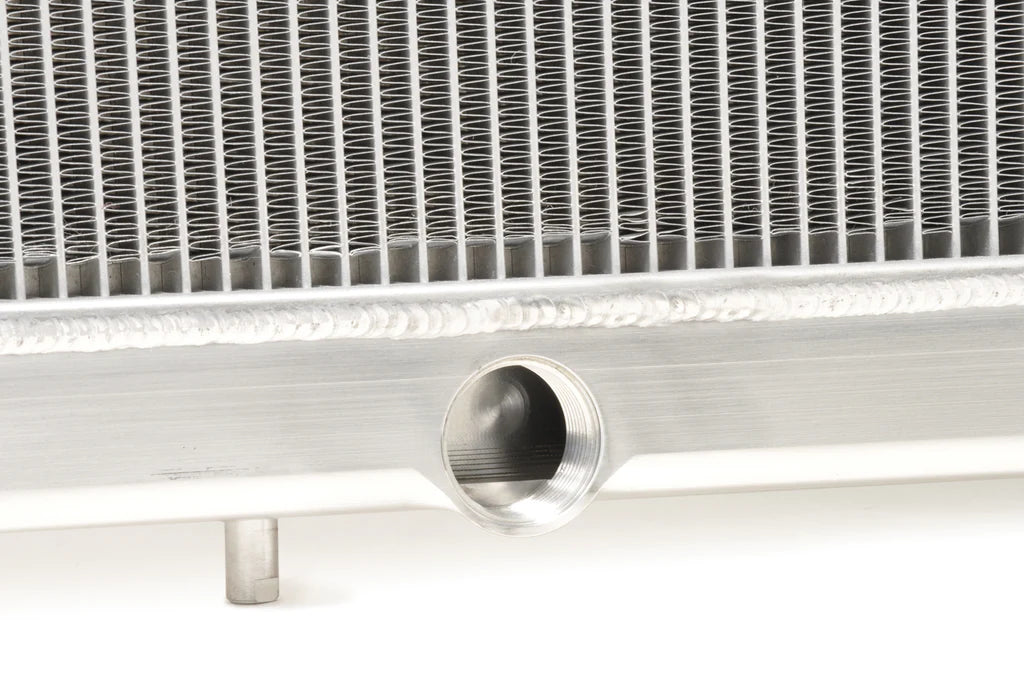 Utilizes a custom sized CSF "B-Tube" Technology Core, which offers a thinner and lighter aircraft grade special clad aluminum material for better cooling efficiency and "dual liquid laminar flow." The CSF "B" design is actually stronger than normal "O" designs and increases the heat transfer surface area of the tube by approximately 15% over regular tubes. No other aftermarket radiator manufacturer uses this technology, raising the bar for high performance radiator cores. The CSF Core also features a smaller 6.5mm fin height - where most standard radiator designs use an 8mm fin - giving us ~25% more tubes and surface area in the core versus other radiator cores.