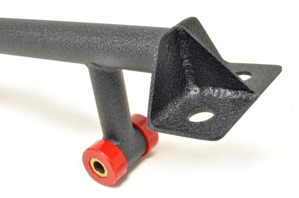 The STM lightweight front cross member brace for Evo X is handmade in the USA and weighs less than half the stock brace! Fabricated in-house from chromoly and steel, then finished with a durable wrinkle black powdercoat. Bushings are pressed in and the factory bolts can be re-used for install.