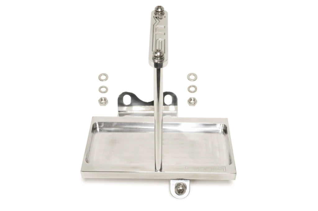 The STM lightweight small battery kit for Evo 7/8/9 allows you to drop 21 pounds vs the factory battery, lightens up the front of the car and clears room in the engine bay for new intercooler piping. The STM tray is machined billet aluminum with stainless hardware and mounts to existing points in the chassis for an easy install.